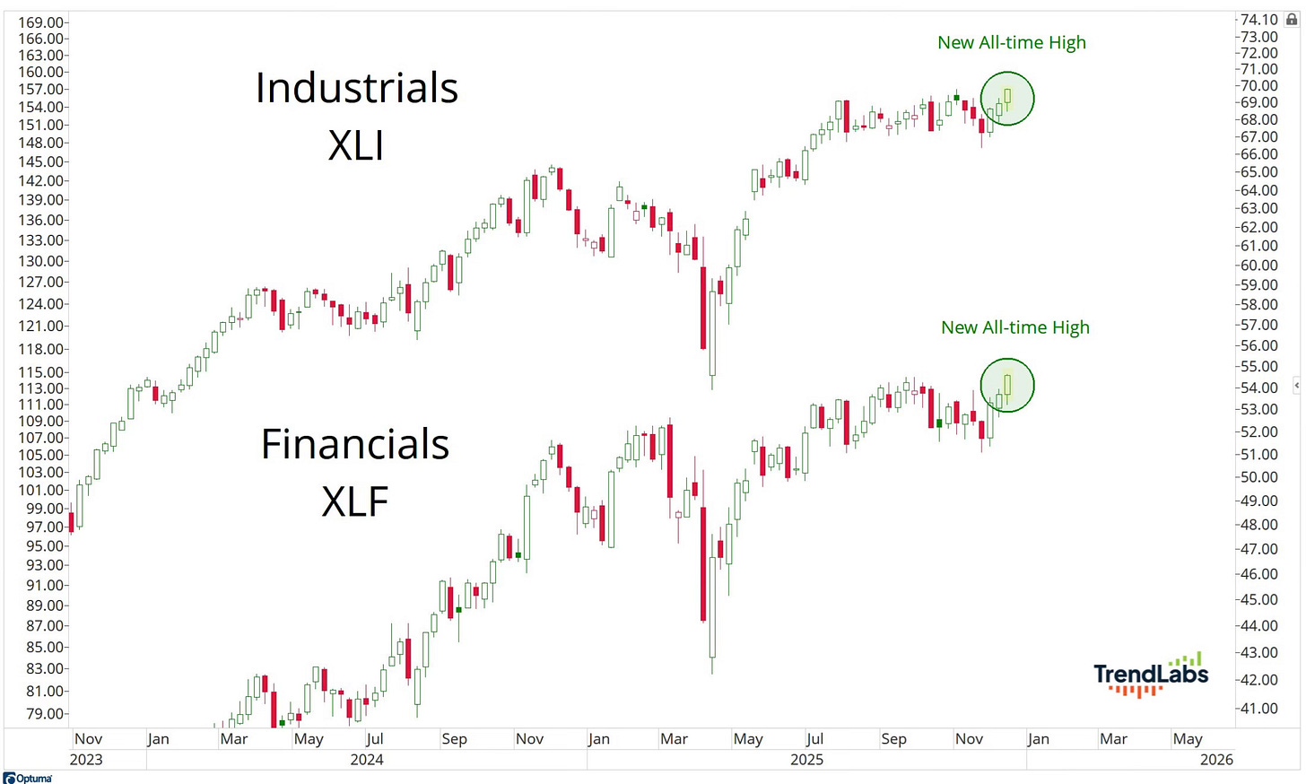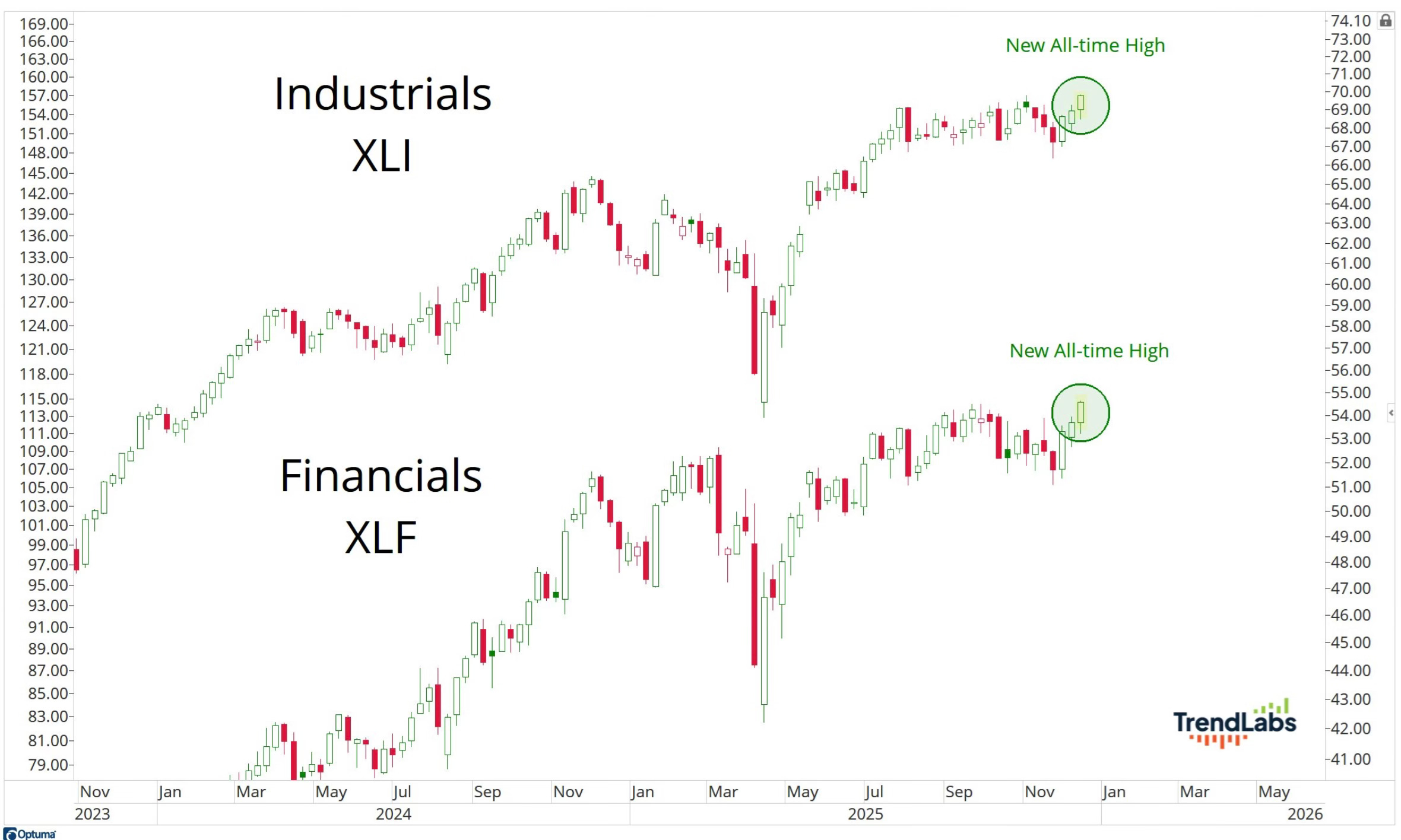 This week also saw small-caps, industrials and financials hit new all-time highs.