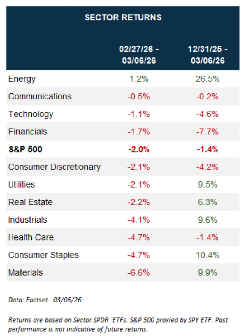 Since last week ended, energy is the only sector in the green. It’s the clear winner so far in 2026.