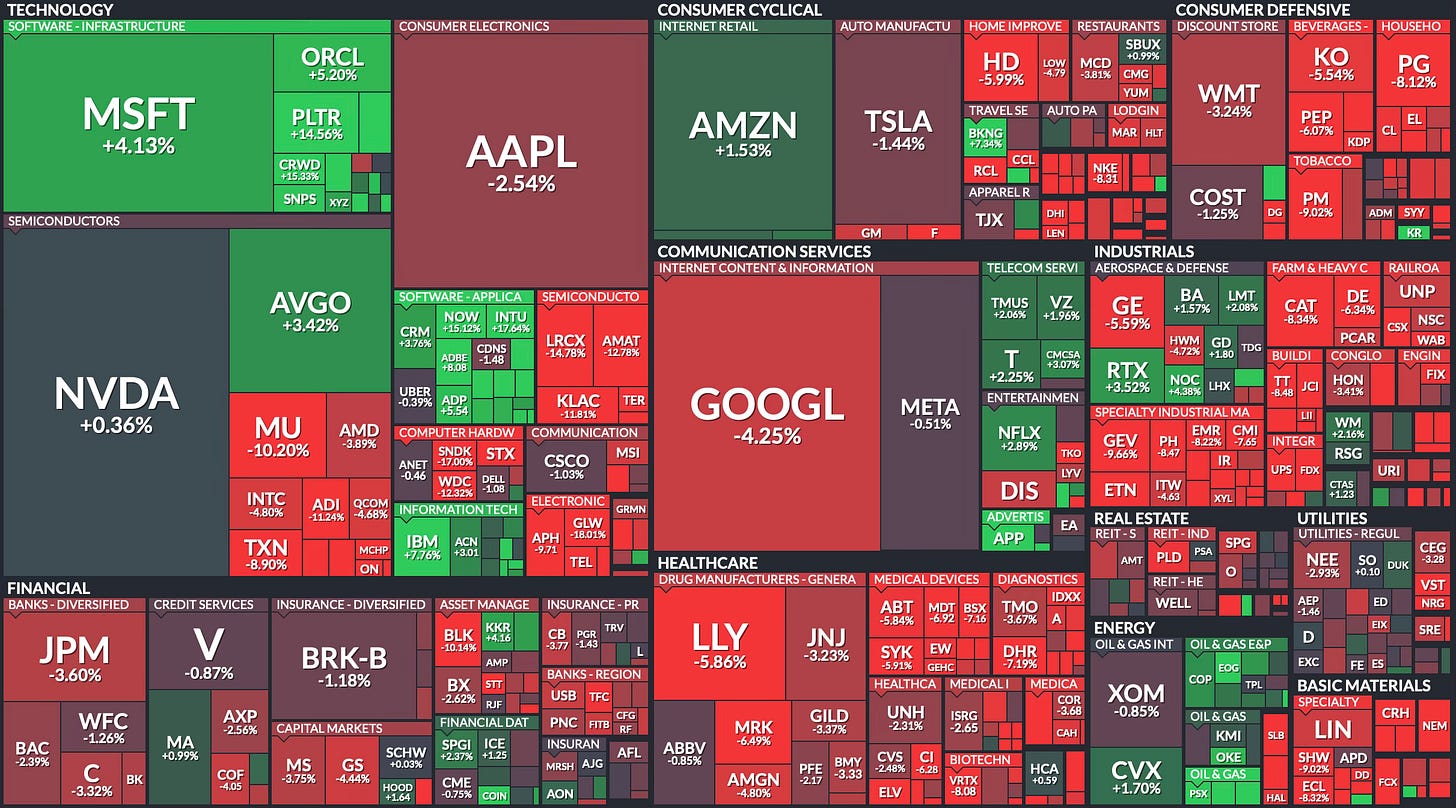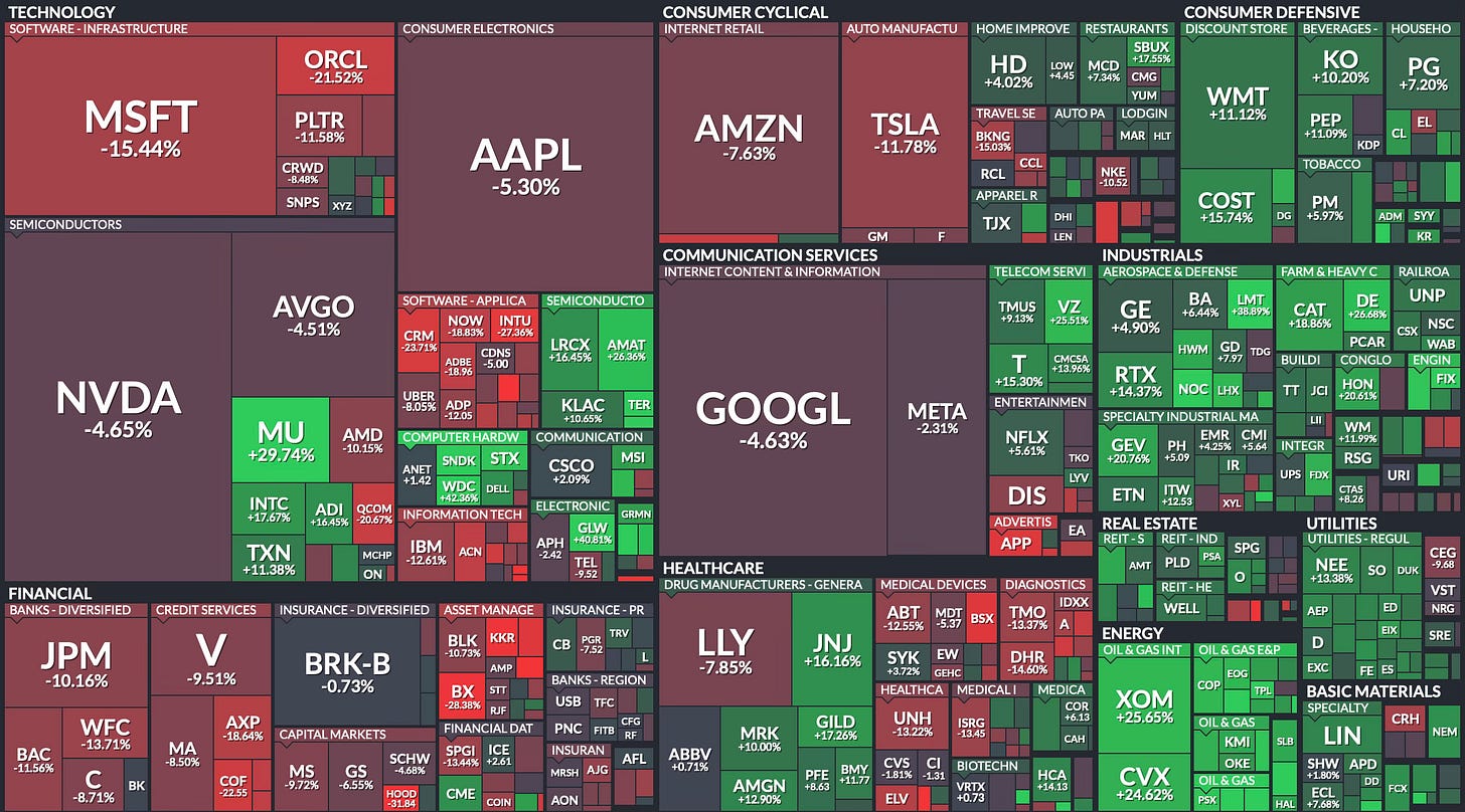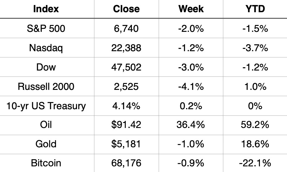 Not everything is red. Gold continued its impressive run, sitting up 18.6% YTD despite a minor weekly dip. And oil was the week’s big story, surging 36.4% on the week, more on that in a moment. We’ll also touch on the latest jobs data coming up.