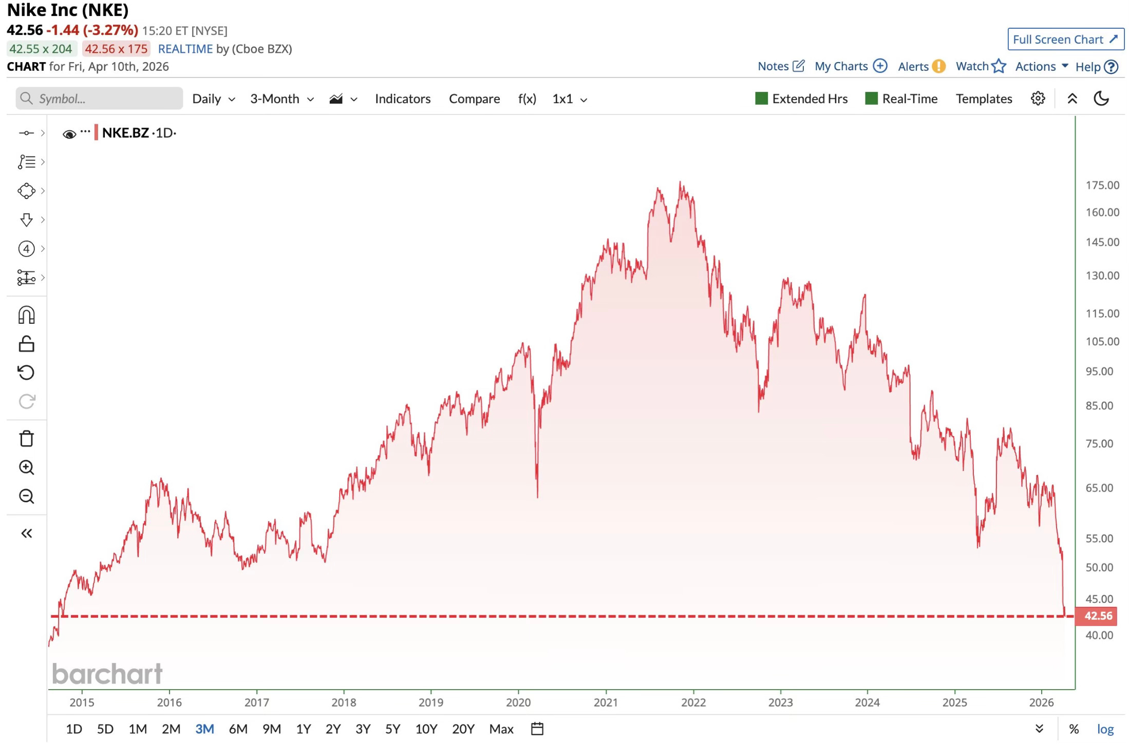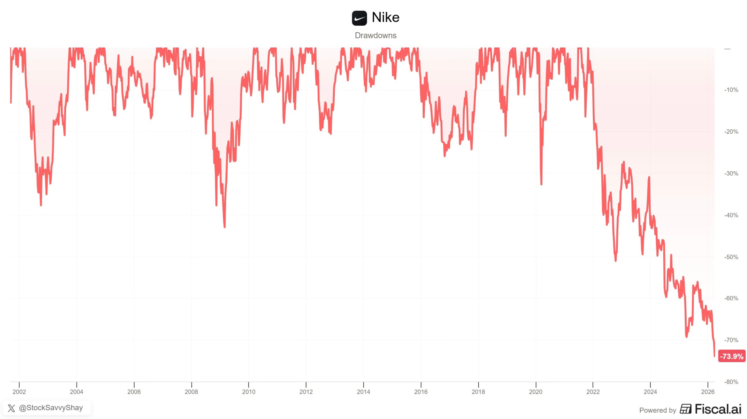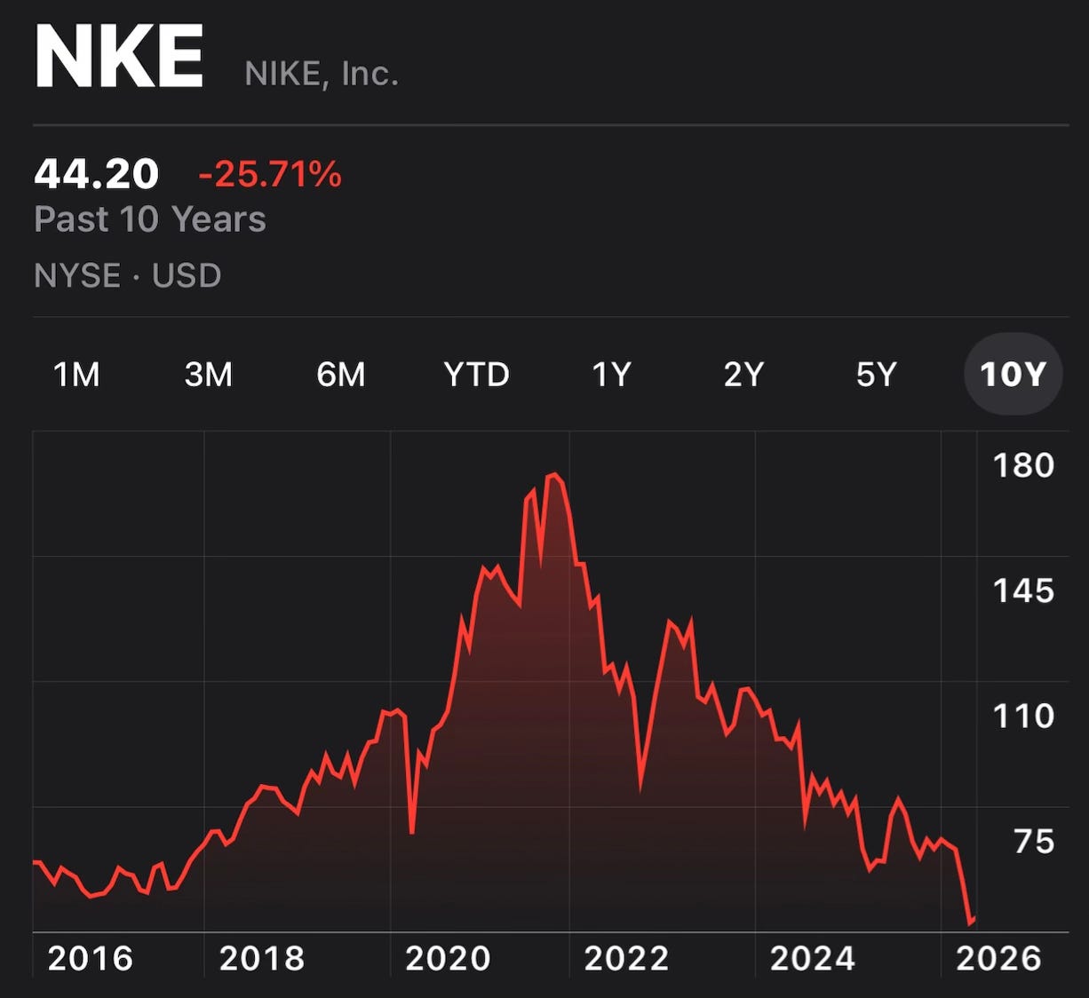 And on April 1st, after reporting earnings, Nike had its single worst day in 40 years. Down 15% in one session. No April Fools joke.