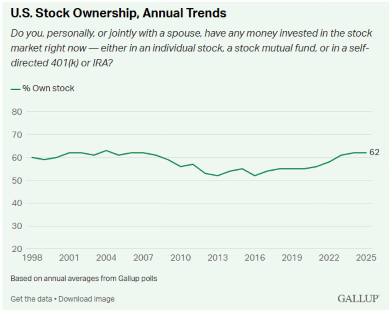 That number feels low to me. It means more than a third of the country is sitting out the most reliable wealth builder of the past century. That is an expensive choice, even if it does not feel like one in the moment.