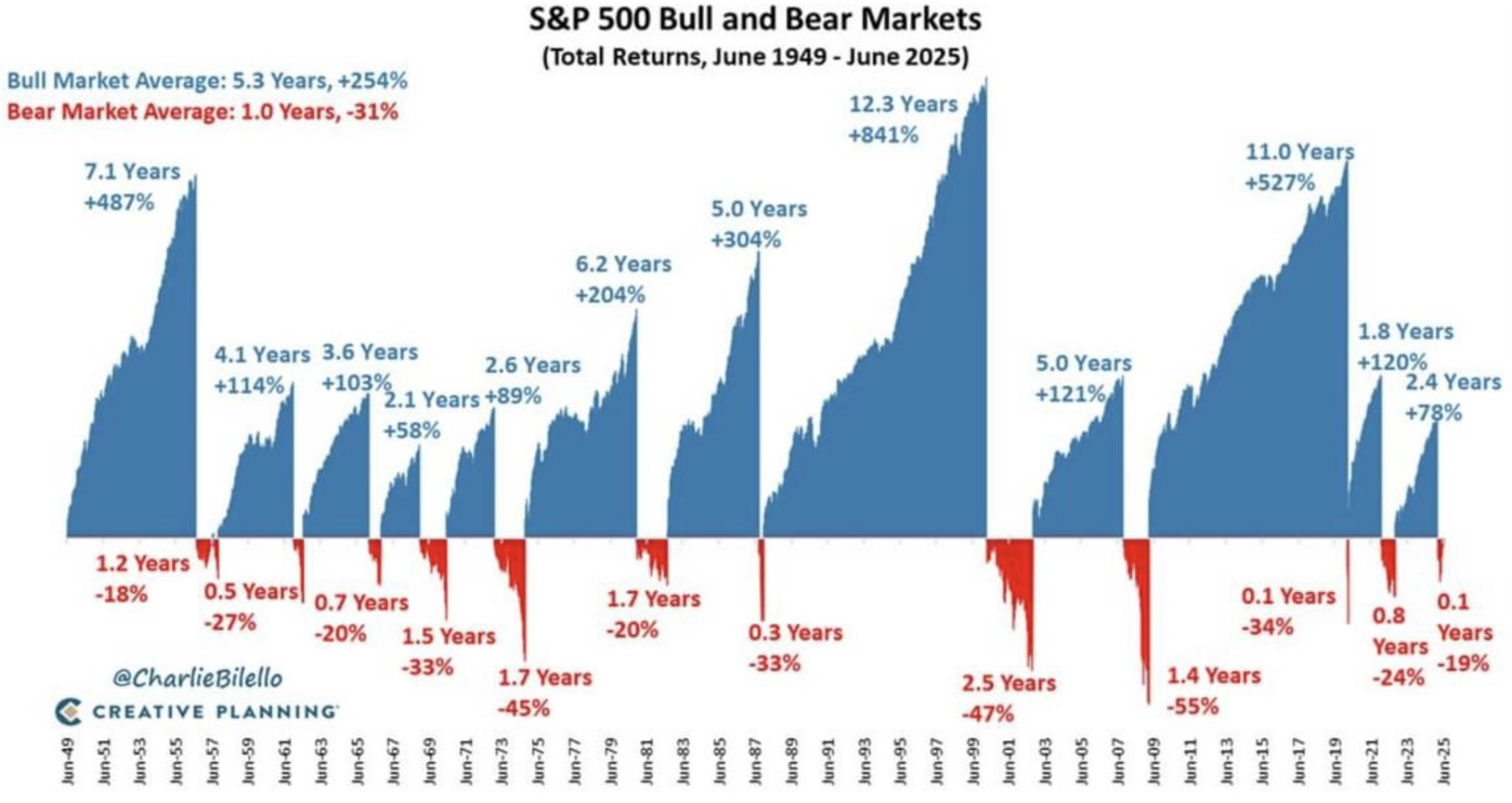 Long term investors know the drill: plug your nose, cover your ears, and keep buying. Month after month. Year after year. They don’t try to time the next dip. They stay the course, knowing that history favors the patient.