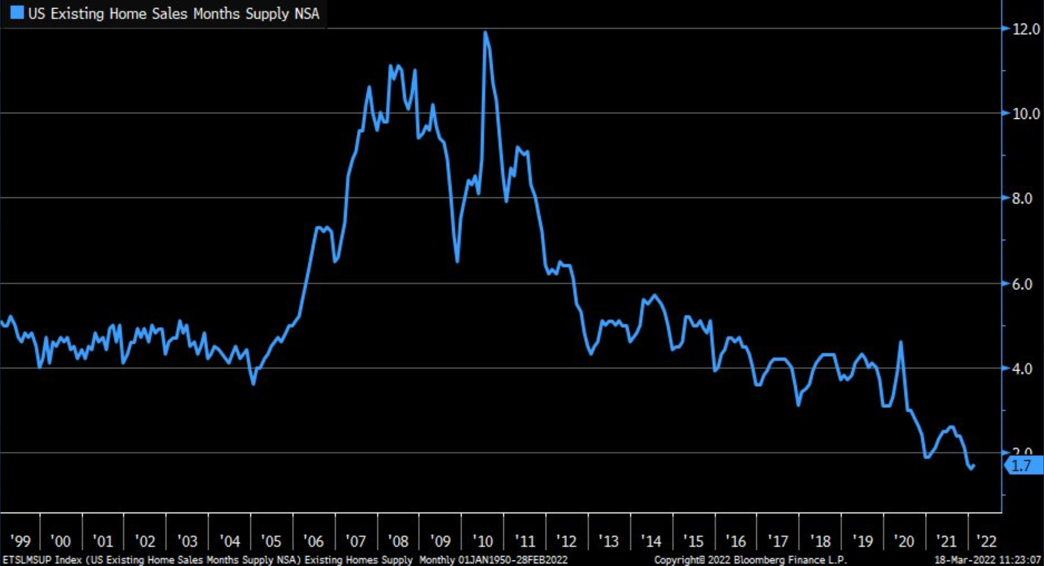 Combine rent increases with near record low inventory and you’re seeing the demand problem we’re in. The current housing inventory would only take 1.7 months to sell all the available homes in the U.S.