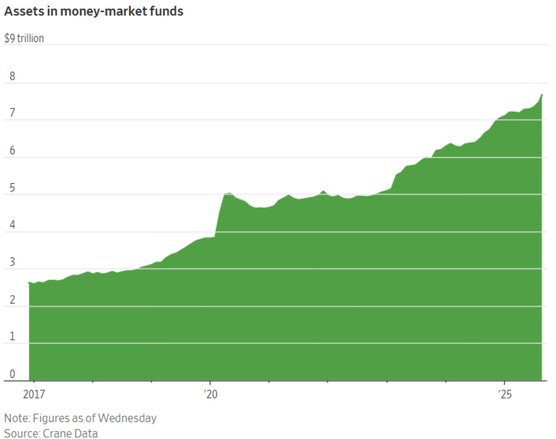 Assets in money-market funds reached a record $7.7 trillion. That number has now tripled in 8 years.