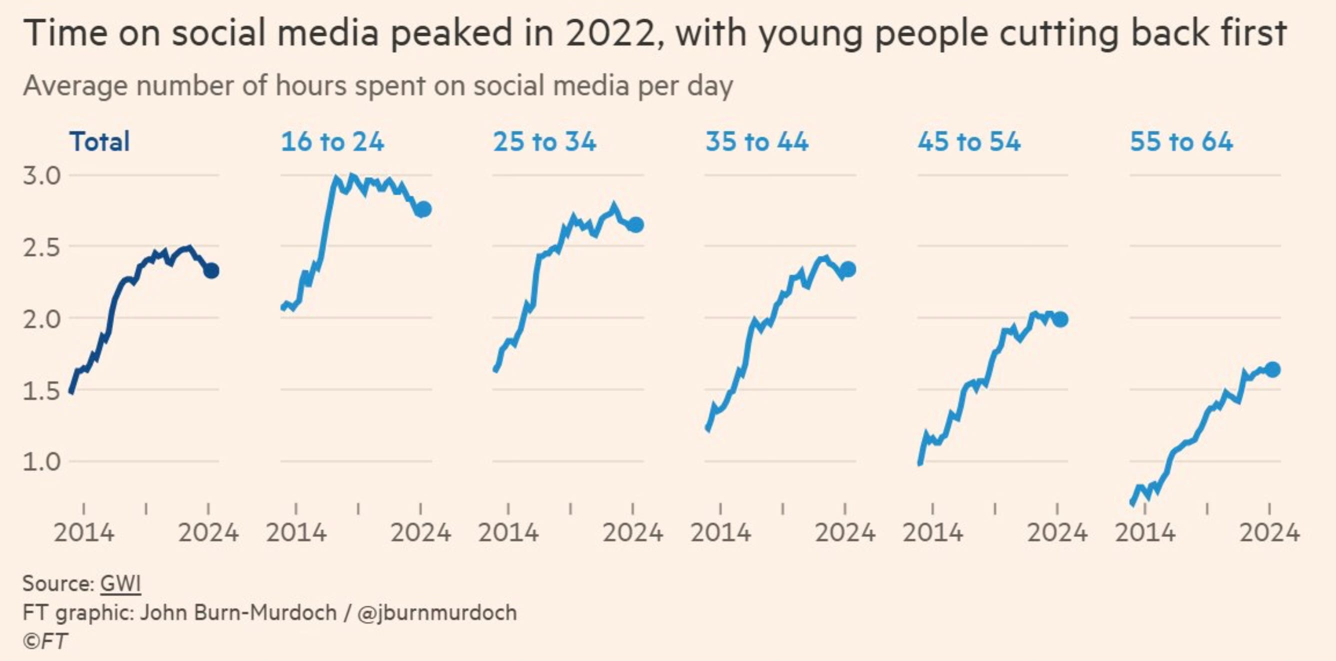 Has time on social media peaked? It’s an interesting question to ponder after seeing this chart.