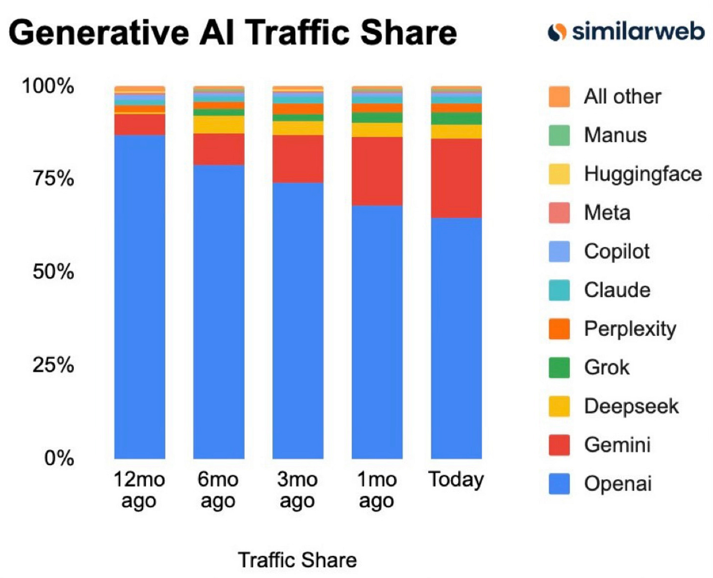 We’re seeing a big shift in the AI traffic share. OpenAI once dominated and now that’s starting to change.